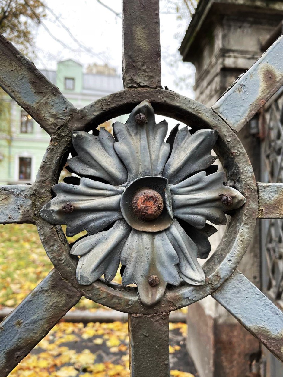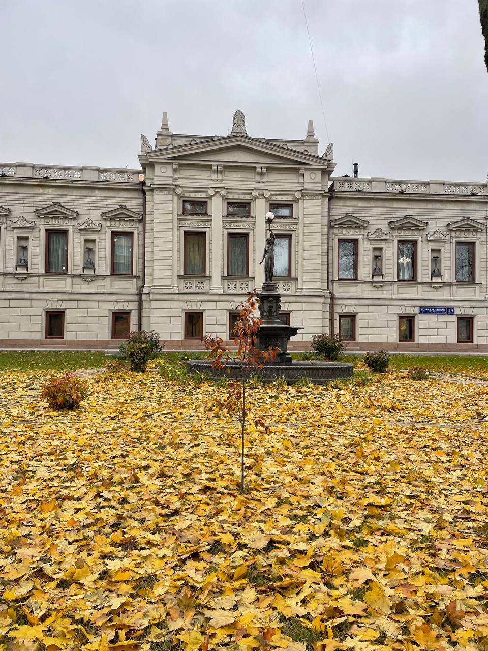 Чугунный фонтан во дворе перед домом "Богиня ночи" – скульптура изображающая женщину, держащую фонарь в руке, который в свое время был очень передовым решением.