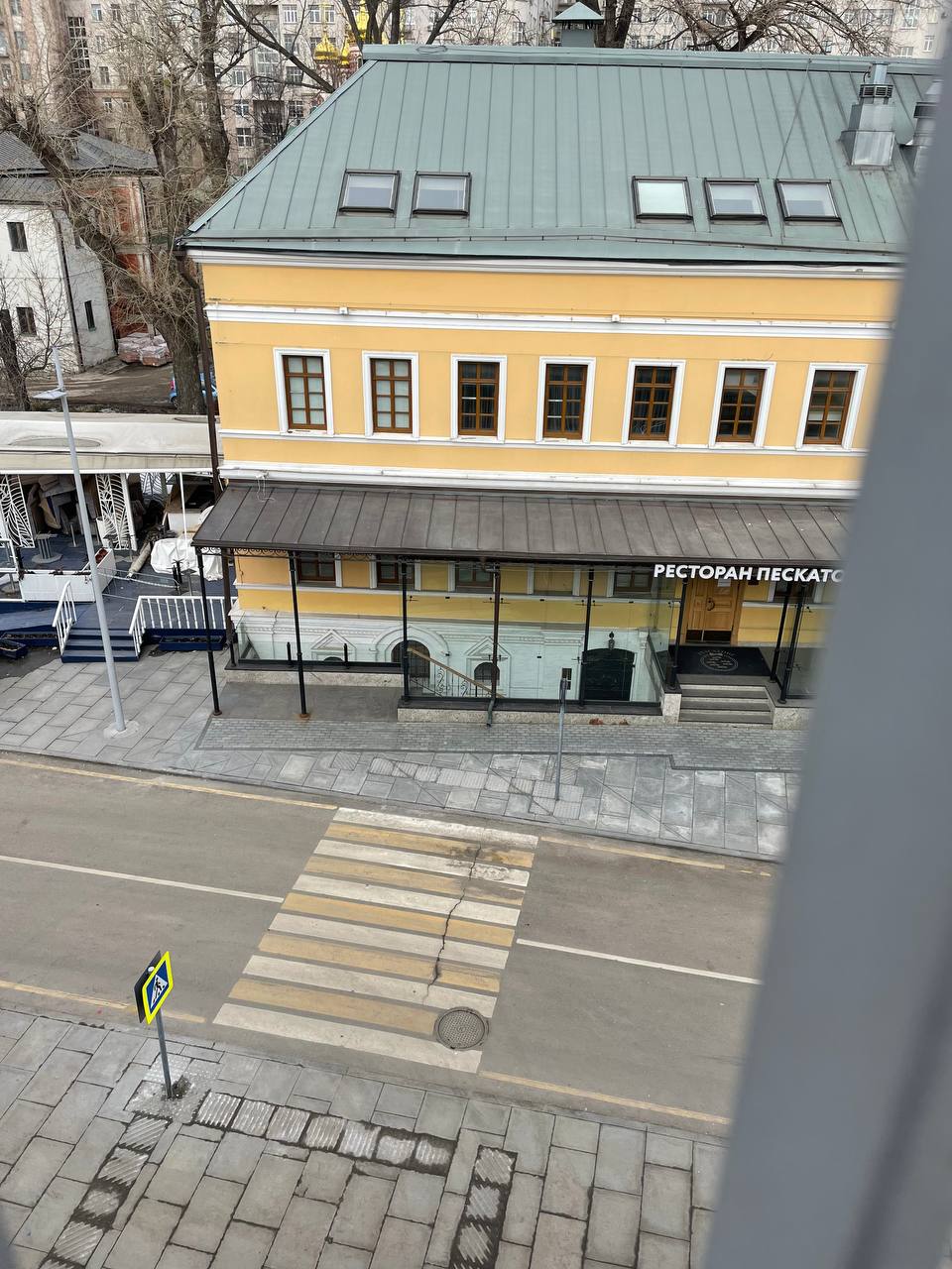 Слева смотрим с моста вниз на здание, просевшее в исторический слой. Спускаемся к нему.