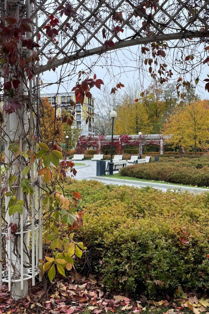 Это прекрасный парк в котором есть каменная горка с гротом, высоким берсо - тоннель, обвитый вьющимися растениями, воркаут и многое другое