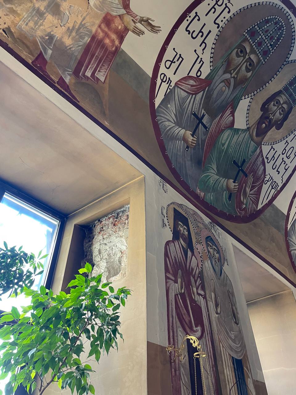 Храм восстановлен. Особенно поражают фрески своей милой мультяшностью - очень красиво, гармонично и я сказала бы даже стильно.
