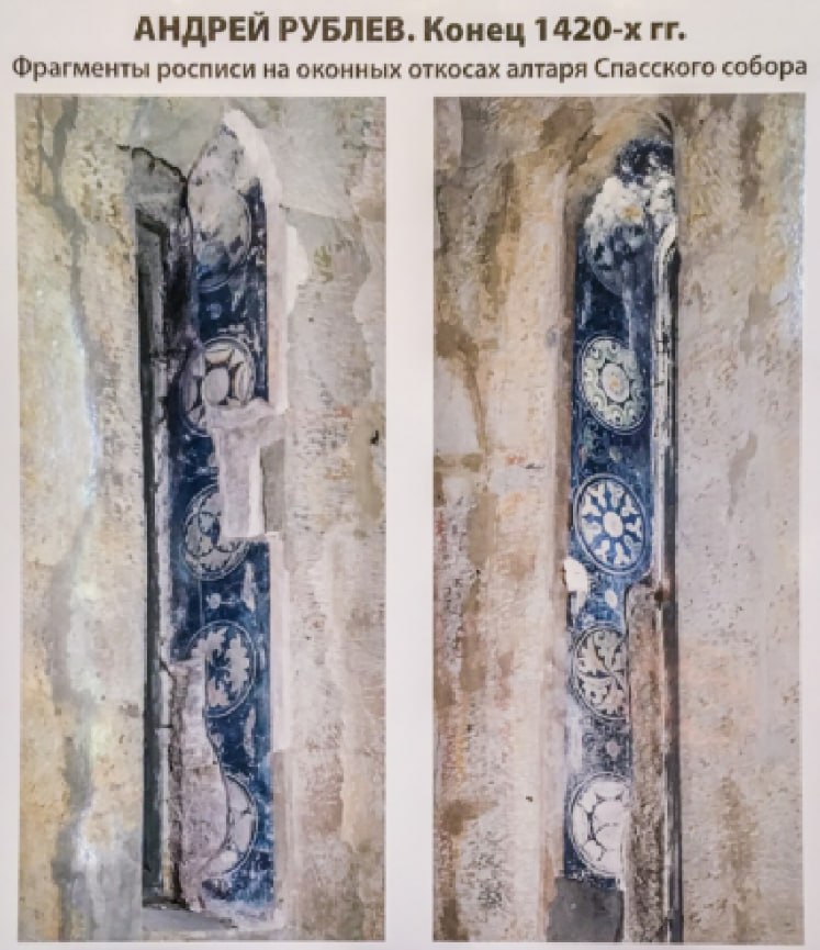 Роспись Спасского собора Андроникова монастыря – последняя работа великого художника. Небольшие фрагменты древней штукатурки с остатками красочного слоя и орнаментальная декорация в откосах окон - единственное свидетельство его работы.