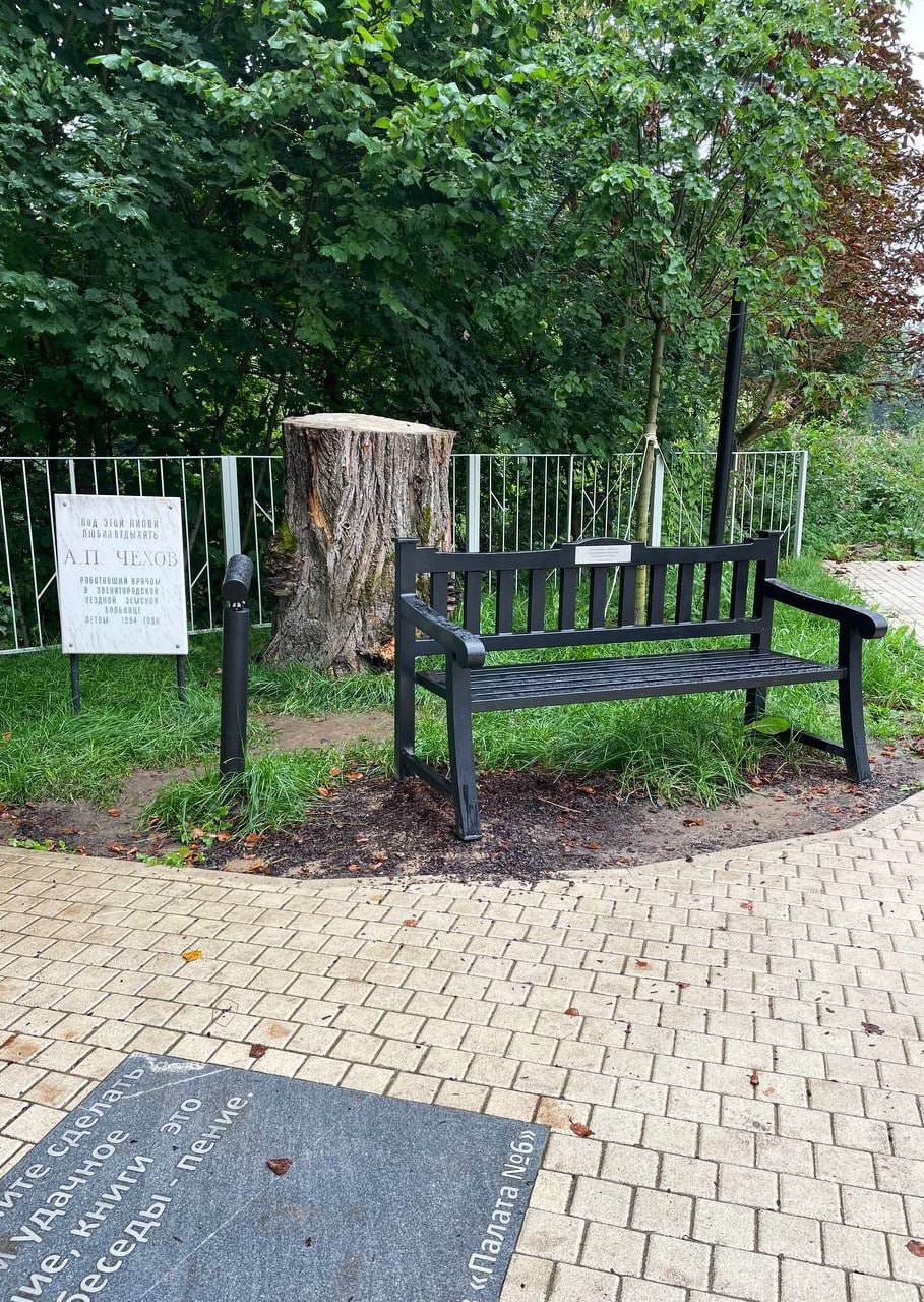 Тропа вывела на площадку с пнем от липы, под которой любил отдыхать Чехов.