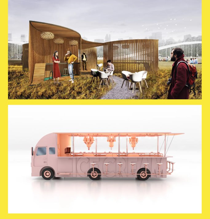 Это пространства на пересечении интерьера и ландшафта, эргономики и урбанистики, неосязаемых социальных связей и успешного бизнеса.