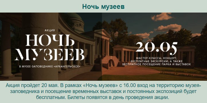 🔜🔜 АРХАНГЕЛЬСКОЕ Уже в эту субботу состоится Международная акция «Ночь музеев