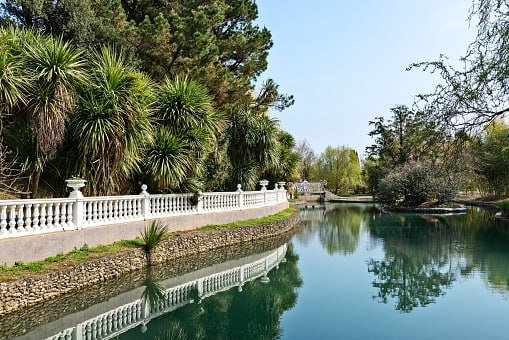 Особое очарование парку придают его водоёмы, где царит умиротворённая атмосфера. Мы застали Голубое озеро, в котором плавали черепахи и грациозные лебеди — белые и чёрные. Эти величественные птицы, скользящие по водной глади, добавляли пейзажу нотку романтики. Вокруг озера растут экзотические растения, многие из которых были привезены из разных уголков мира, создавая впечатление путешествия по разным континентам.