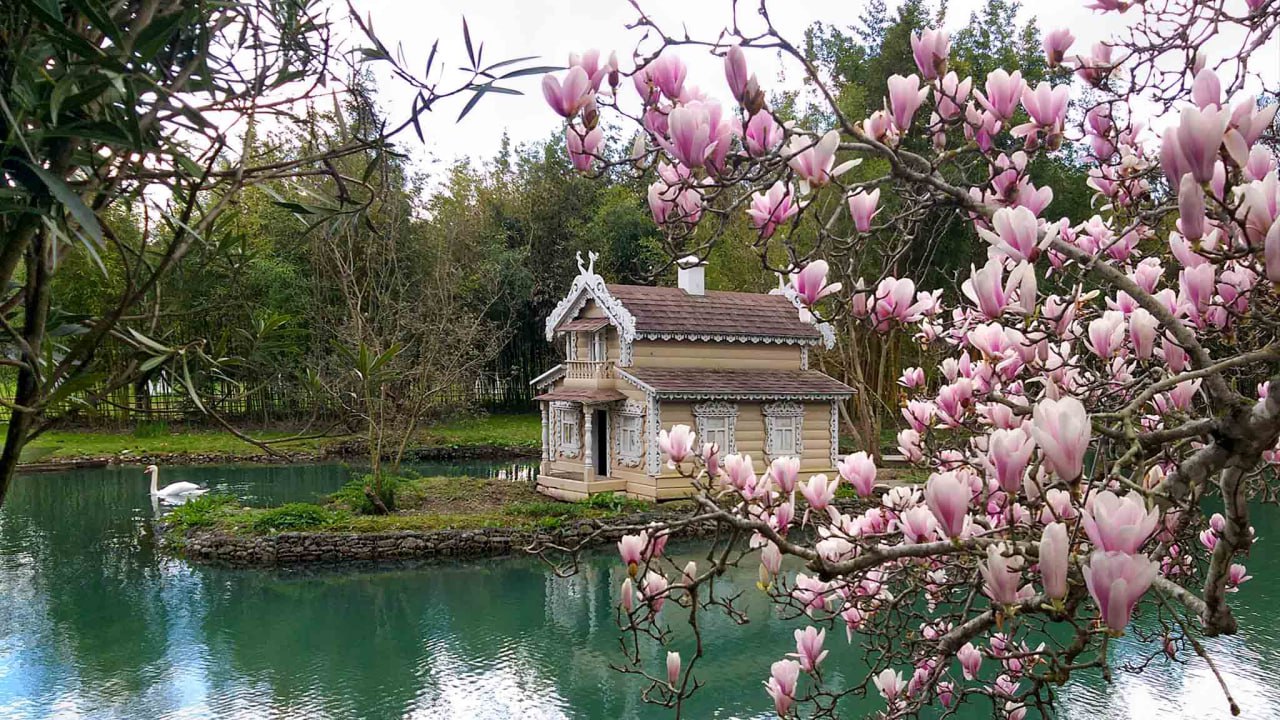 Дендрологический парк «Южные культуры» основан в 1910 году генералом Даниилом Драчевским, а спроектирован талантливым ландшафтным архитектором Арнольдом Регелем. Нам невероятно повезло попасть сюда в апреле, когда цвели магнолии, камелии и китайский багрянник.