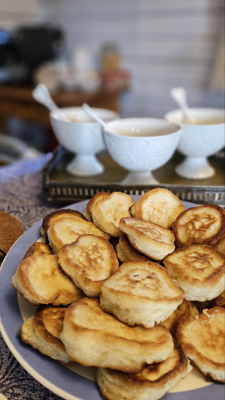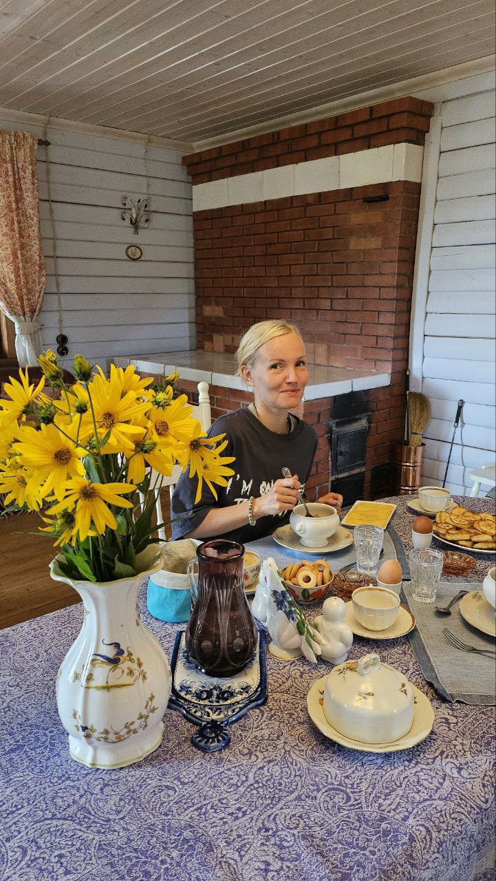 А завтрак - абсолютный восторг! В отдельном отреставрированном доме, в комнате с горячей печкой, столами, сервированными антикварной посудой и горой пышных оладьев.