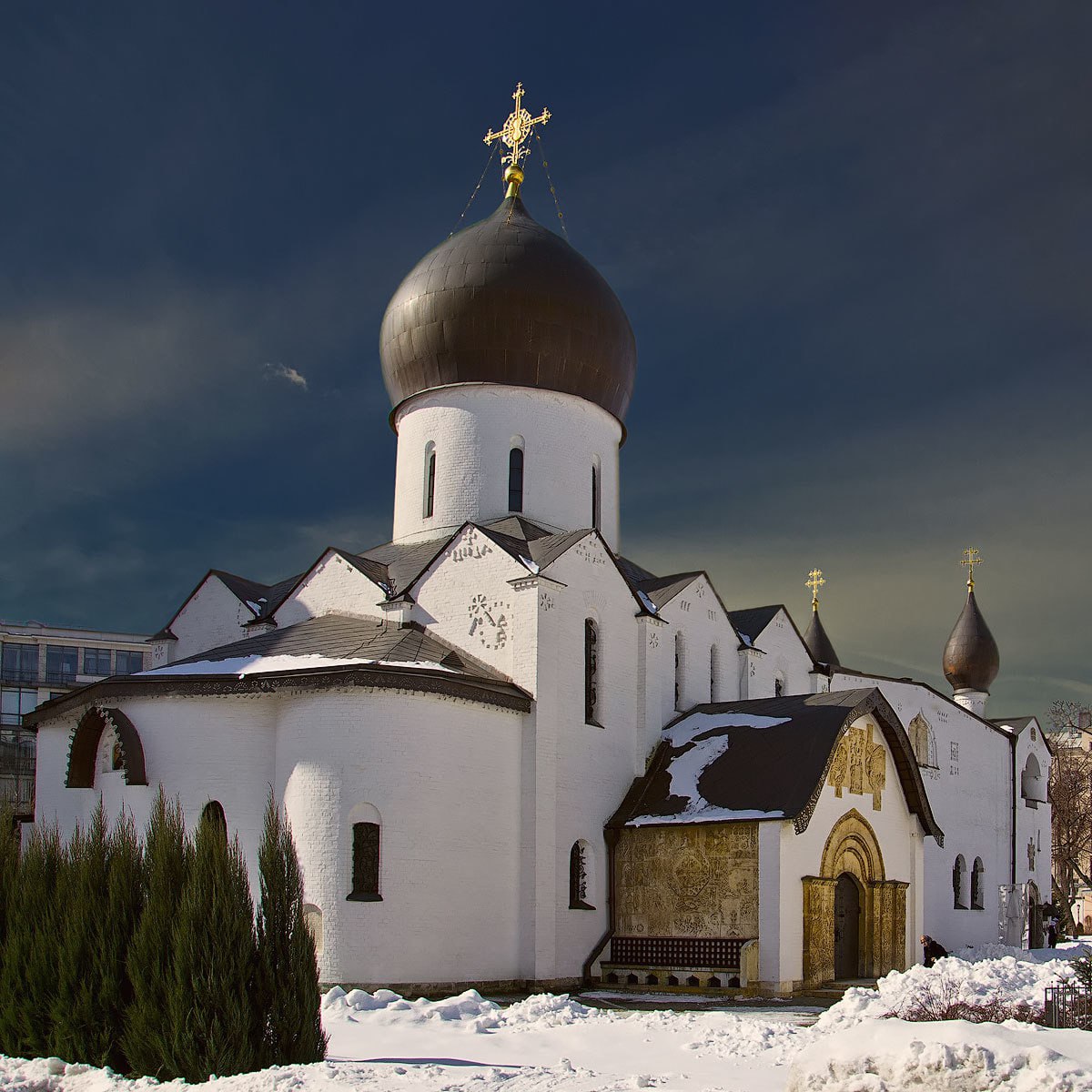 Сегодня мы легко попали на территорию. Храм отреставрирован, как игрушка ладненький. Обходишь и удивляешься как по-разному он выглядит с разных сторон, как хочется все рассматривать. Храм однокупольный, при этом купол очень крупный и необычной формы. Отдельные купола вытянуты и тоже очень непривычные. Весной и летом, думаю тут тоже прекрасно. Обязательно зайдем! #АТместо