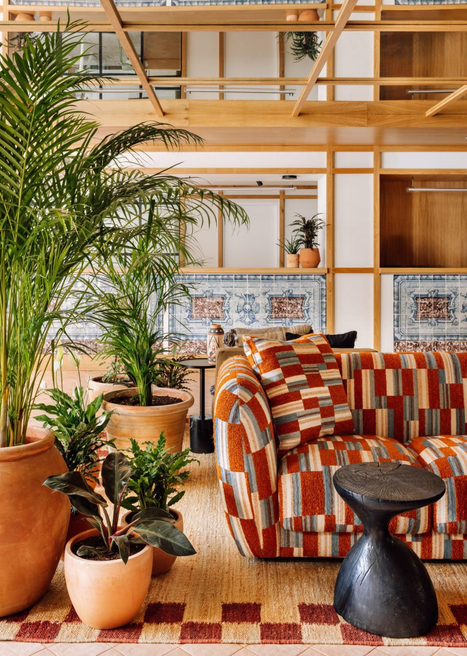 В интерьерах — только натуральные материалы, местные ткани, керамика Grau Cerâmica и камень Rose Aurora, а стены всех 370 номеров украшают текстильные работы перуанской художницы Аны Терезы Барбосы, созданные специально для Locke — с фрагментами геологической карты Португалии и нитями, окрашенными местными пигментами.