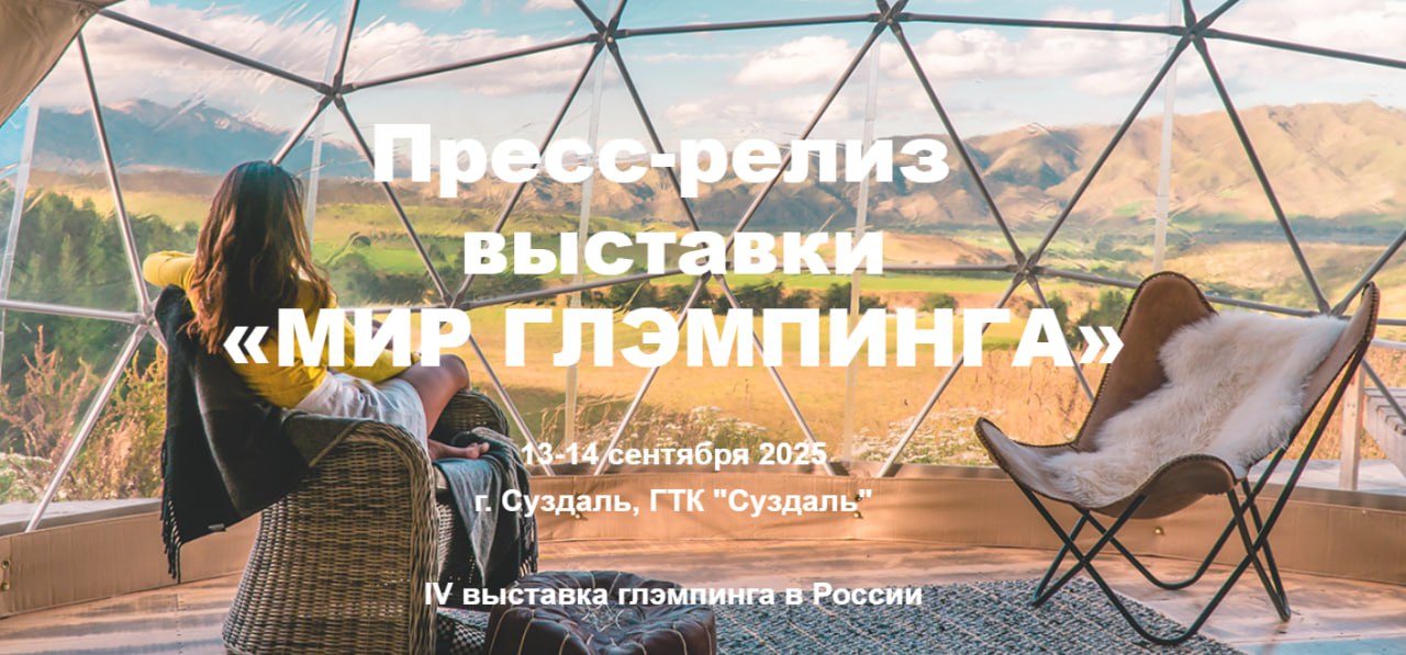 С 13 по 14 сентября 2025 года в г. Суздаль, ГТК «Суздаль» состоится IV профессиональная выставка глэмпинга - «МИР ГЛЭМПИНГА / THE GLAMPING WORLD», которая объединит в едином информационном пространстве владельцев эко-отелей, производителей различных видов глэмпов, а также владельцев земельных участков в живописных местах и госструктуры, в чьем ведомстве находятся рекреационные зоны.