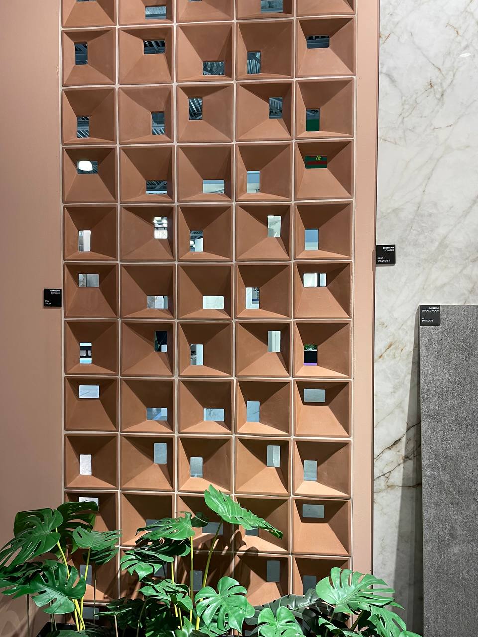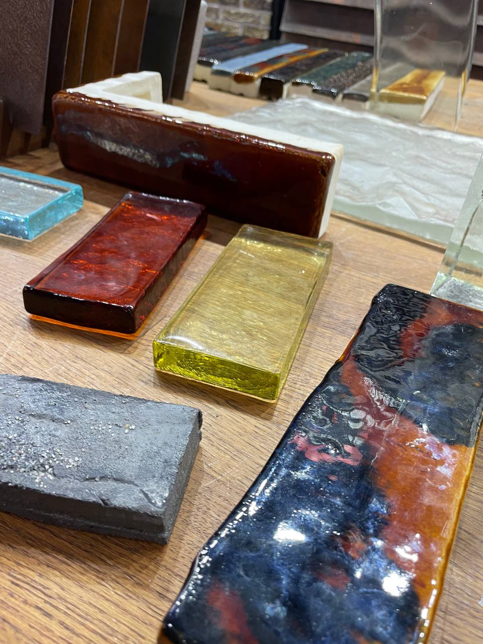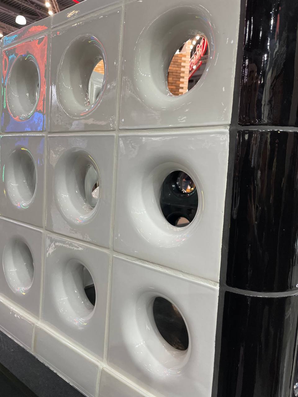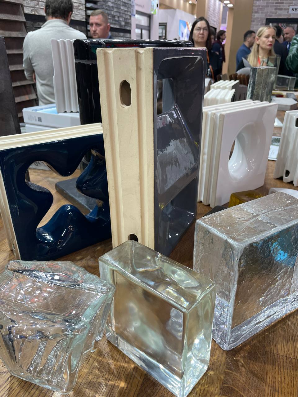 Кроме полюбившихся стеклянных блоков и фальконье представлены блоки с отверстием для создания невероятных перегородок