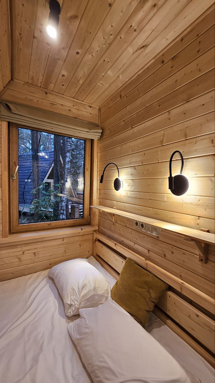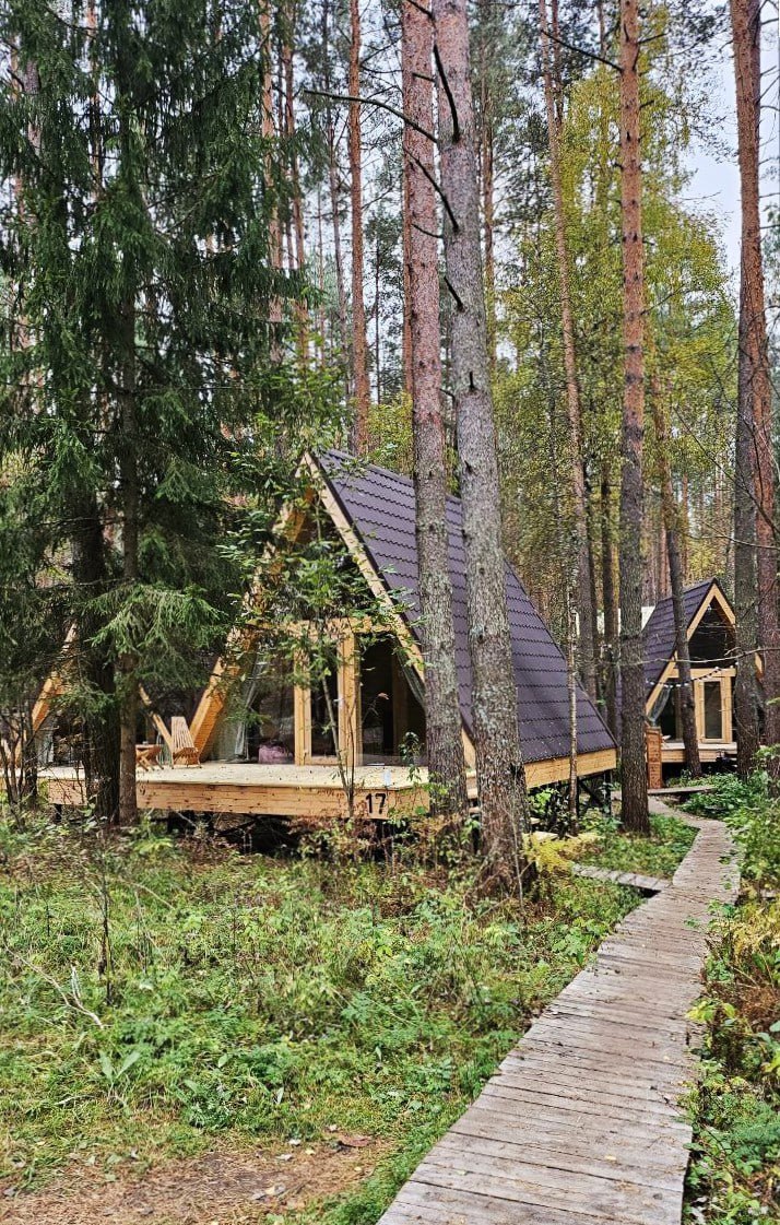 Загородный отель на берегу реки Орша включает 17 домиков с панорамным остеклением, террасами и чердачным дополнительным местом для сна. Также на территории находятся ресепшн с рестораном, банька, открытый горячий бассейн и причал.