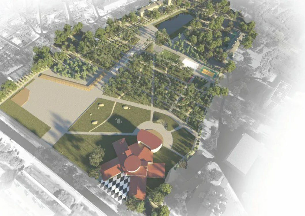 Пройдете мимо церкви Иоанна Богослова и констуктивисткого ДК и вы в парке.