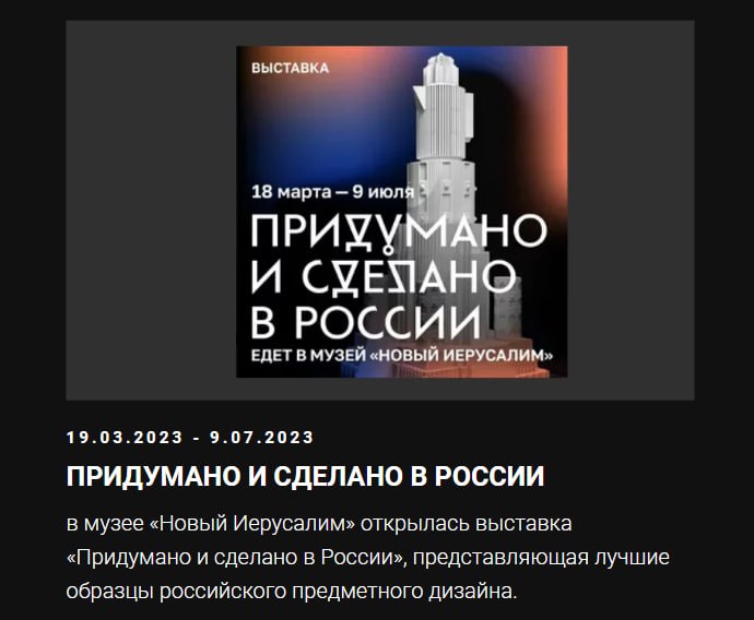 ➡️ ПРИДУМАНО И СДЕЛАНО В РОССИИ 18 марта в музее «Новый Иерусалим» открылась вы