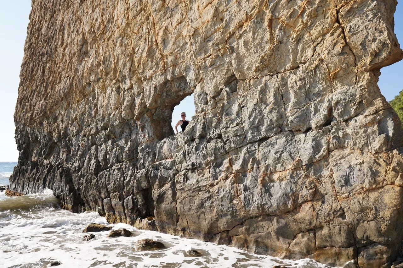 Когда-то, ещё в шесть лет, я впервые увидела эту скалу. И сейчас, спустя годы, она завораживает так же сильно. Парус — это творение природы, которому миллионы лет. Когда-то он был частью берега, но ветер и волны медленно, шаг за шагом, высекли из песчаника этот удивительный 25-метровый обелиск с «окном» у основания. Говорят, его хотели разрушить ещё в XIX веке, стреляя по нему с корабля, — но скала устояла.