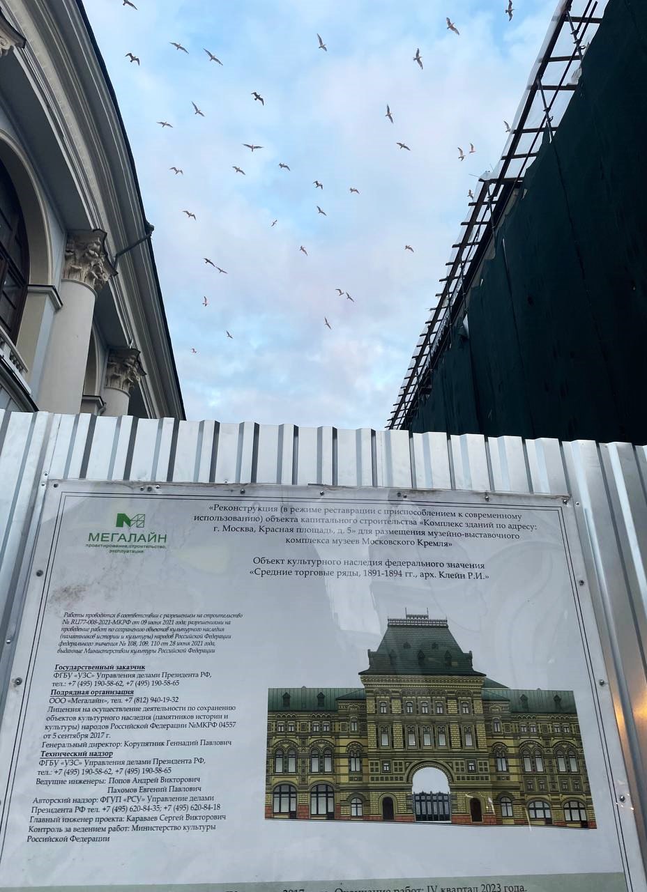 Средние Торговые ряды, построенные в конце 19 века, ближе к Красной площади были на реконструкции в лесах.