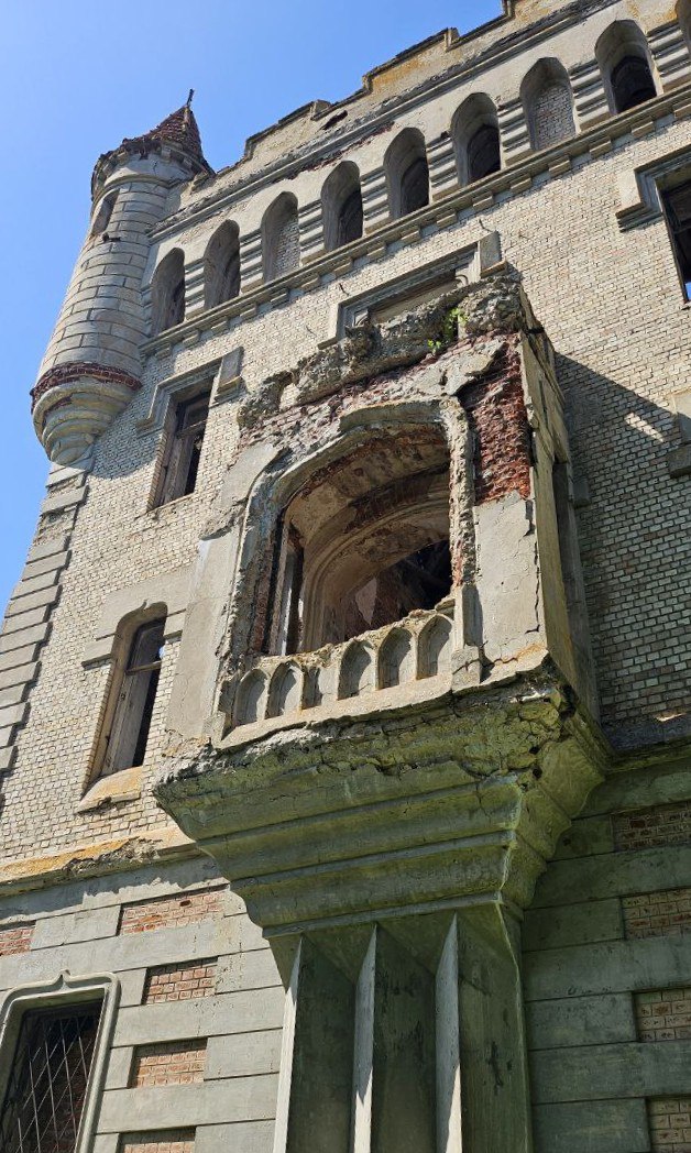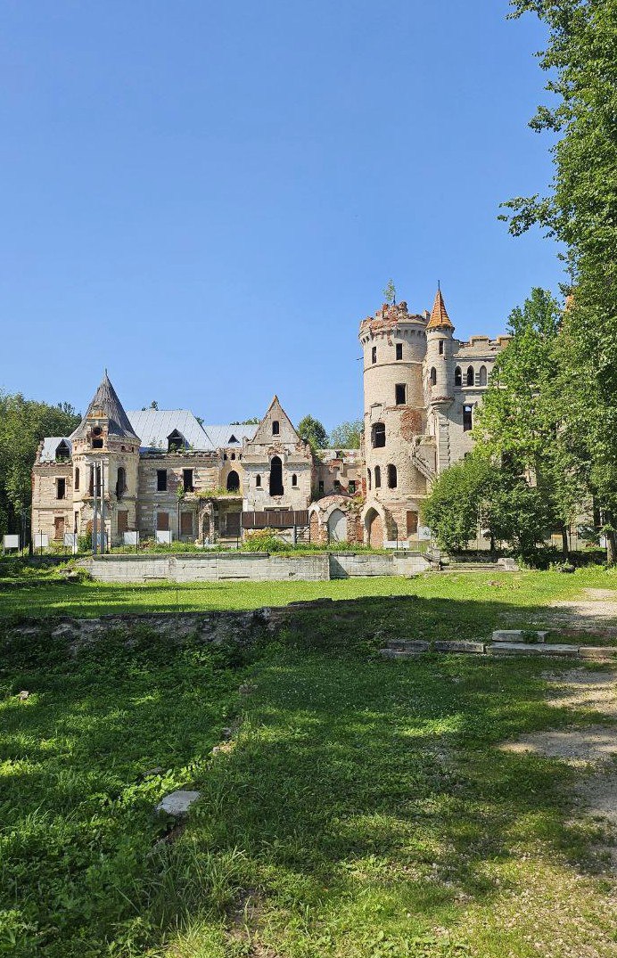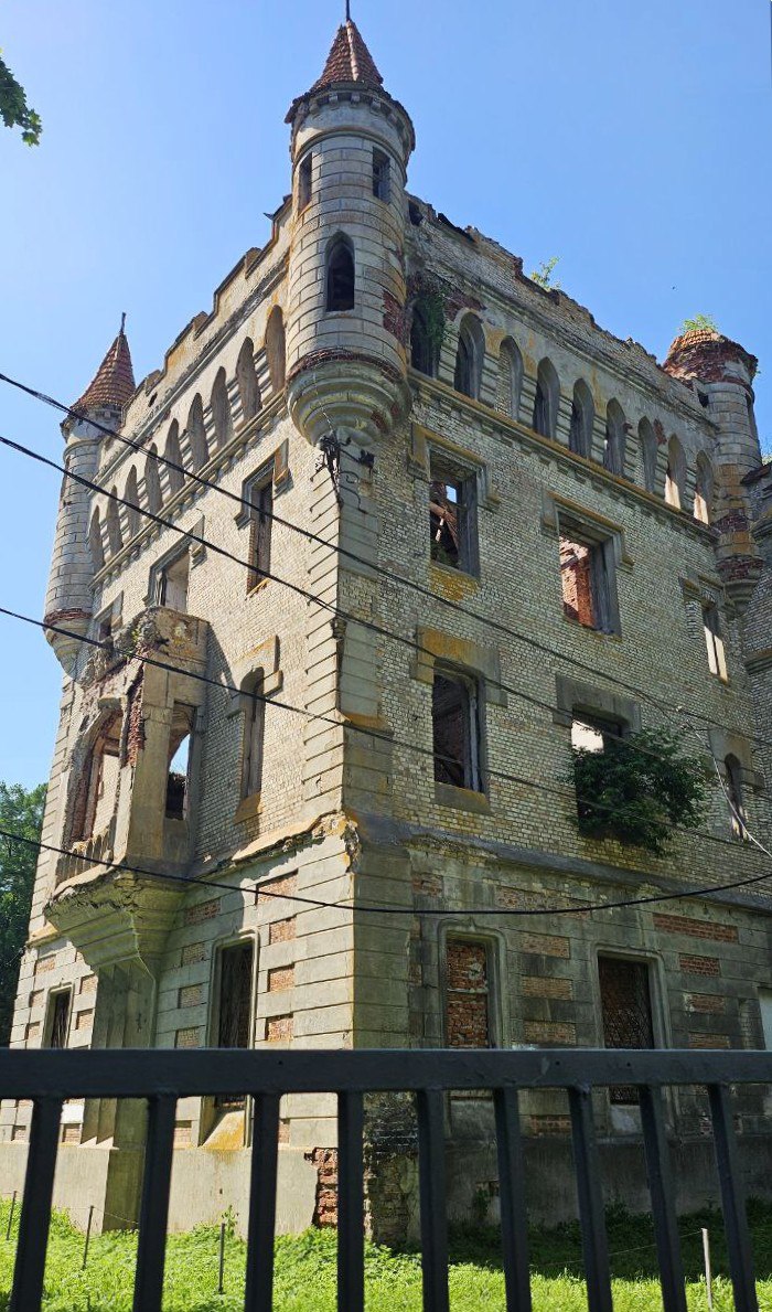 Уникальная усадьба в неоготическом стиле, построенная в 1884-1889 годах для Владимира Храповицкого, сегодня находится в аварийном состоянии. Главный дворец, когда-то поражавший роскошью интерьеров и витражами, сейчас стоит с заколоченными окнами, частично без крыши. От былого великолепия сохранились лишь мощные стены и элементы декора — резные балюстрады, стрельчатые окна и зубчатые парапеты.