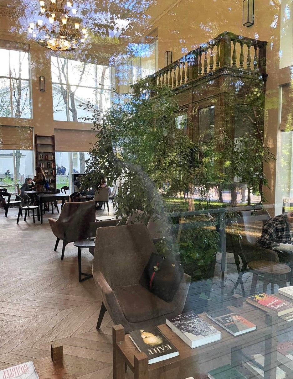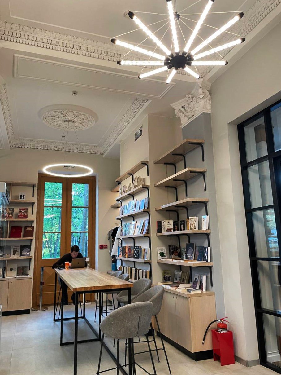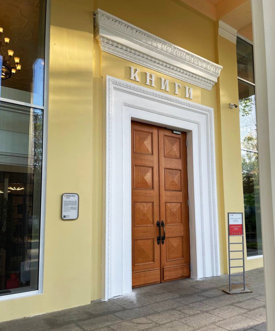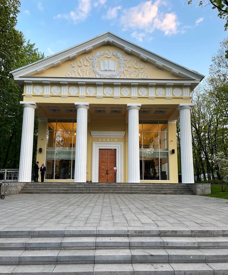 Здесь архитектурная строгость античного храма совмещена с внутренним уютом современного пространства. Здесь приятно находиться, ведь в павильоне есть всё для этого: уютное кафе, разнообразная культурная программа, и, конечно же, много хороших книг.